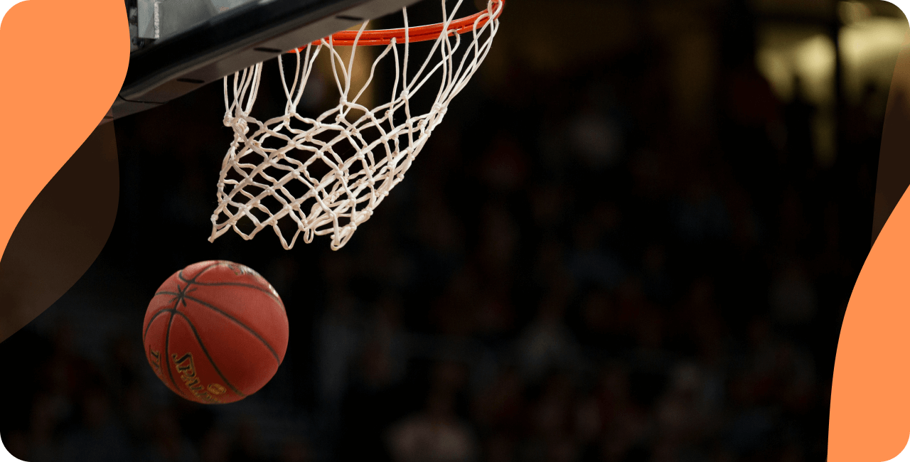 A basketball going through a hoop to demonstrate a sports radio show idea