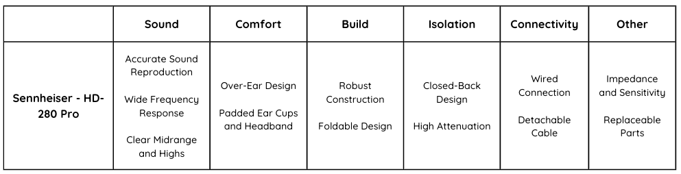 – Impedance and Sensitivity: With an impedance of 64 ohms and high sensitivity, the HD-280 Pro headphones are versatile and can be used with a variety of audio equipment, from professional studio gear to portable devices.